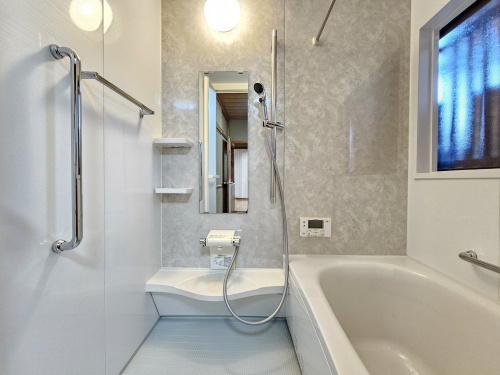 白色をベースにした浴室は、清潔感と広がりを感じさせます